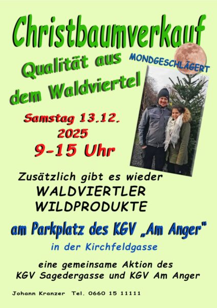 Weihnachten beginnt bei uns! Für ein unvergessliches Fest, erhalten Sie auf dem Parkplatz des KGV Am Anger Ihren frisch geschlagenen Christbaum.